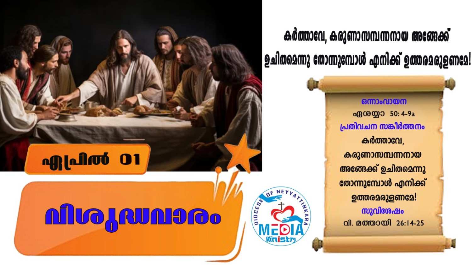 പുളിപ്പില്ലാത്ത അപ്പത്തിന്റെ ഒന്നാംദിവസം ശിഷ്യൻമാർ യേശുവിന്റെ അടുത്തുവന്നു ചോദിച്ചു: നിനക്കു പെസഹാ എവിടെ ഒരുക്കണമെന്നാണ് നീ ആഗ്രഹിക്കുന്നത്? അവൻ പറഞ്ഞു: നിങ്ങൾ പട്ടണത്തിൽ പോയി ഇന്നയാളുടെ അടുത്തു ചെന്നു പറയുക: ഗുരു പറയുന്നു, എന്റെ സമയം സമാഗതമായി; ഞാൻ എന്റെ ശിഷ്യൻമാരോടുകൂടെ നിൻ്റെ വീട്ടിൽ പെസഹാ ആചരിക്കും. യേശു നിർദേശിച്ചതുപോലെ ശിഷ്യൻമാർ പെസഹാ ഒരുക്കി. വൈകുന്നേരമായപ്പോൾ അവൻ പന്ത്രണ്ടുശിഷ്യൻമാരോടൊത്ത് ഭക്ഷണത്തിനിരുന്നു. ഭക്ഷ്ഷിച്ചുകൊണ്ടിരിക്കേ, അവൻ പറഞ്ഞു: സത്യമായി ഞാൻ നിങ്ങളോടു പറയുന്നു, നിങ്ങളിൽ ഒരുവൻ എന്നെ ഒറ്റിക്കൊടുക്കും. അവർ അതീവ ദുഃഖിതരായി; ‘കർത്താവേ, അതു ഞാൻ അല്ലല്ലോ’ എന്ന് ഓരോ രുത്തരും അവനോടു ചോദിക്കാൻ തുടങ്ങി. അവൻ പ്രതിവചിച്ചു: എന്നോടുകൂടെ പാത്രത്തിൽ കൈമുക്കുന്നവൻ എന്നെ ഒറ്റിക്കൊ ടുക്കും. മനുഷ്യപുത്രൻ, എഴുതപ്പെട്ടിരിക്കുന്നതുപോലെ പോകുന്നു. എന്നാൽ, മനുഷ്യപുത്രനെ ആര് ഒറ്റിക്കൊടുക്കുന്നുവോ അവനു ദുരിതം! ജനിക്കാതിരുന്നെങ്കിൽ അവനു നന്നായിരുന്നു! അവനെ ഒറ്റിക്കൊടുക്കാനിരുന്ന യൂദാസ് അവനോടു ചോദിച്ചു: ഗുരോ, അതു ഞാനോ? അവൻ പറഞ്ഞു: നീ പറഞ്ഞുകഴിഞ്ഞു.
